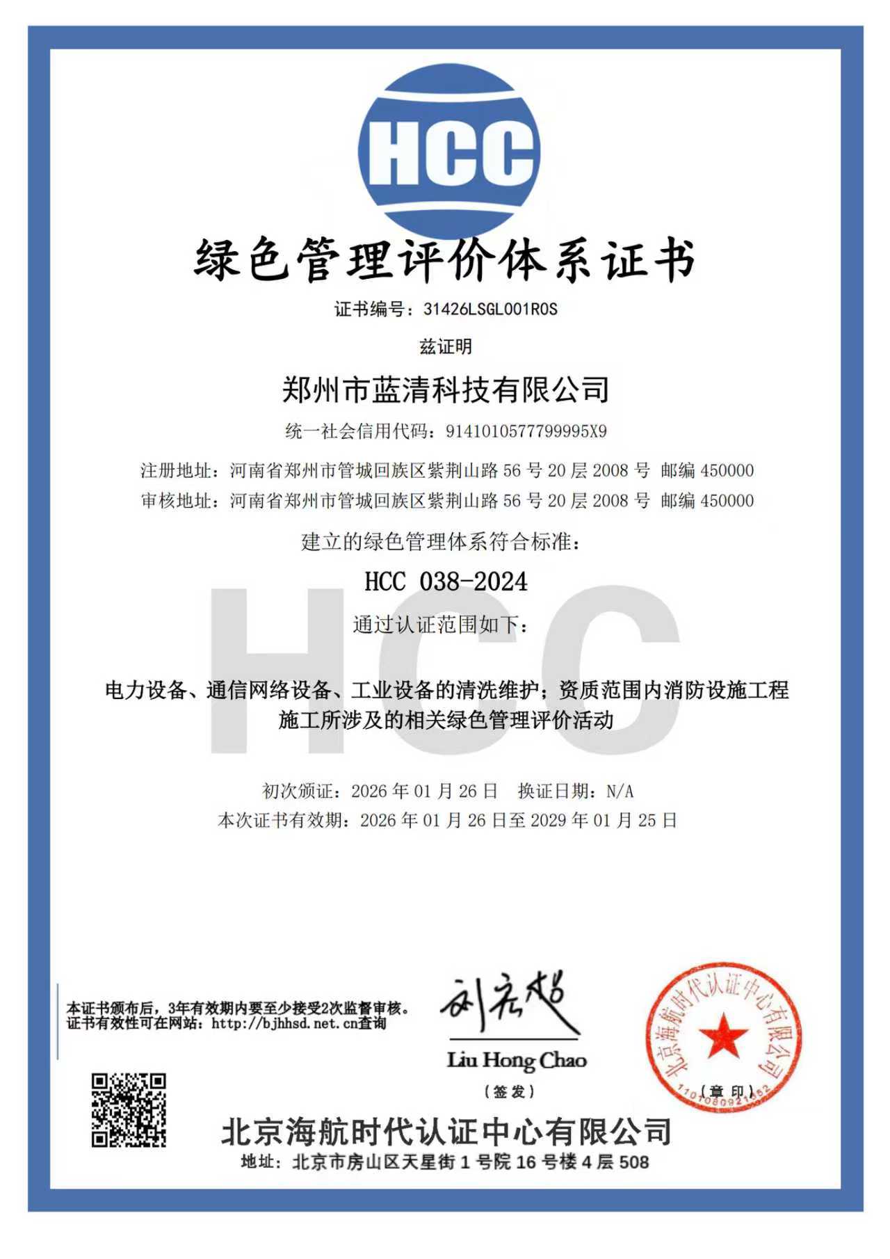 绿色管理评价体系证书